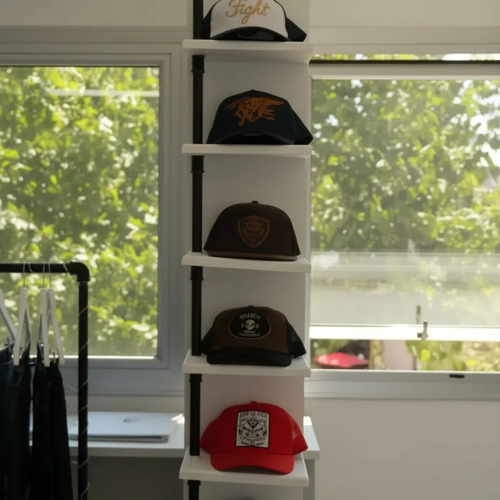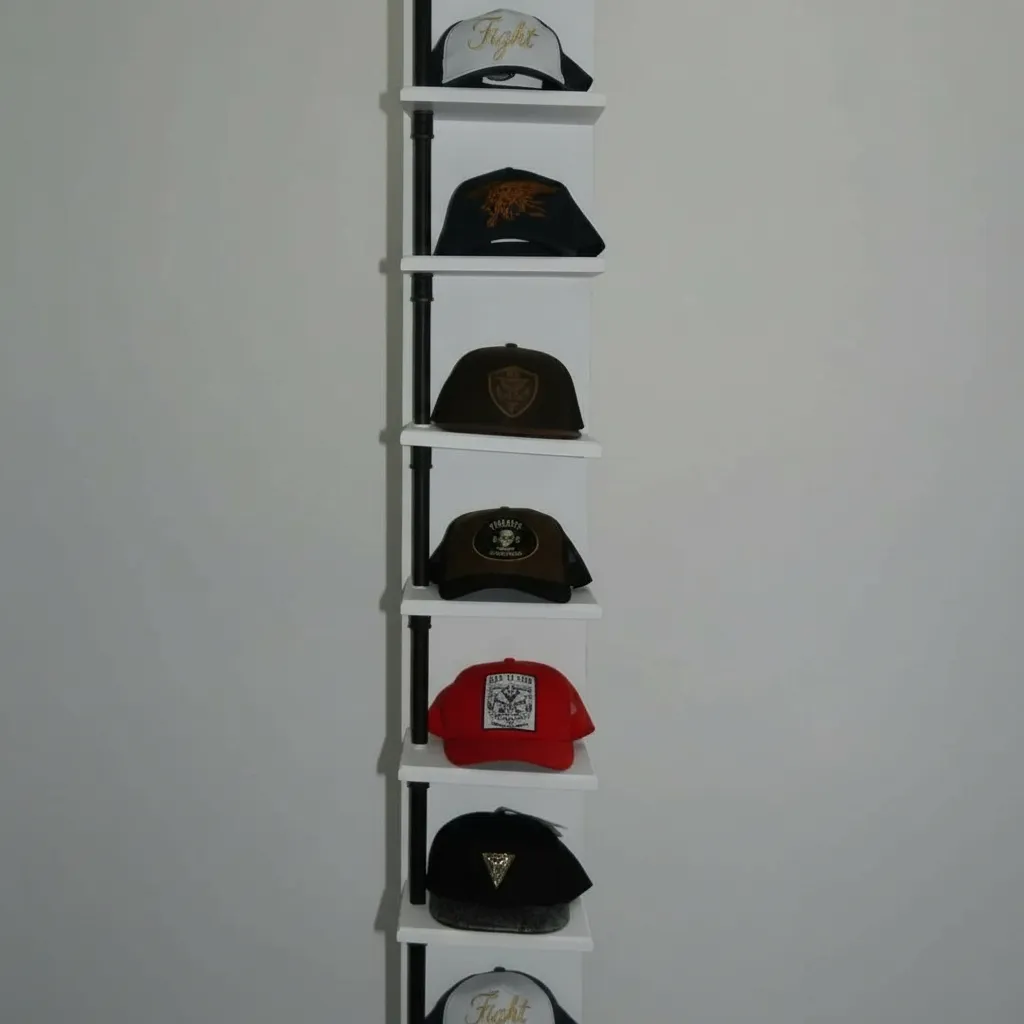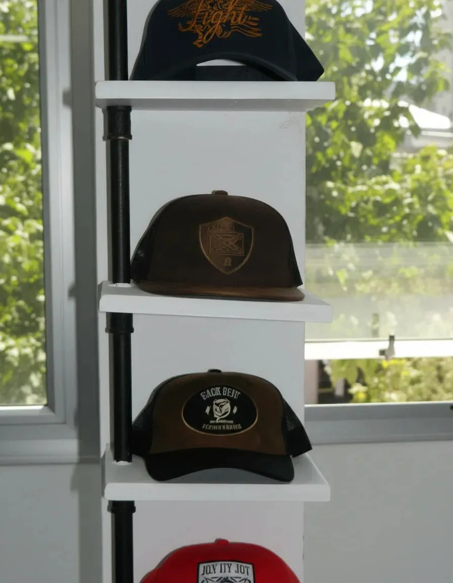 Exhibidor Organizador de Gorras HEFESTO – Estilo Industrial El modelo HEFESTO de Vintage Rack combina estilo industrial y funcionalidad para mantener tus gorras organizadas y siempre al alcance. Características principales: Estantes giratorios: 8 unidades de madera (20 x 25 cm), perfectos para exhibir y organizar gorras. Diseño versátil: Estructura reversible y estética vintage, ideal para hogares, tiendas o eventos. Dimensiones: Altura total de 160 cm, con base robusta de caño industrial de 25 mm de diámetro. Perfecto para quienes buscan combinar organización y estilo, este exhibidor realza cualquier espacio mientras mantiene tus gorras seguras y accesibles. ¡Nos encanta tu consulta! Vintage Rack