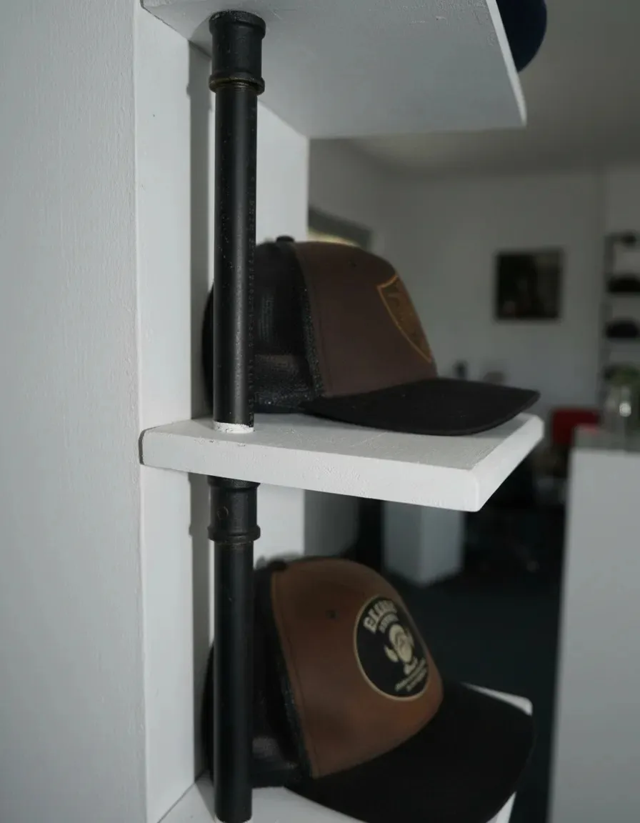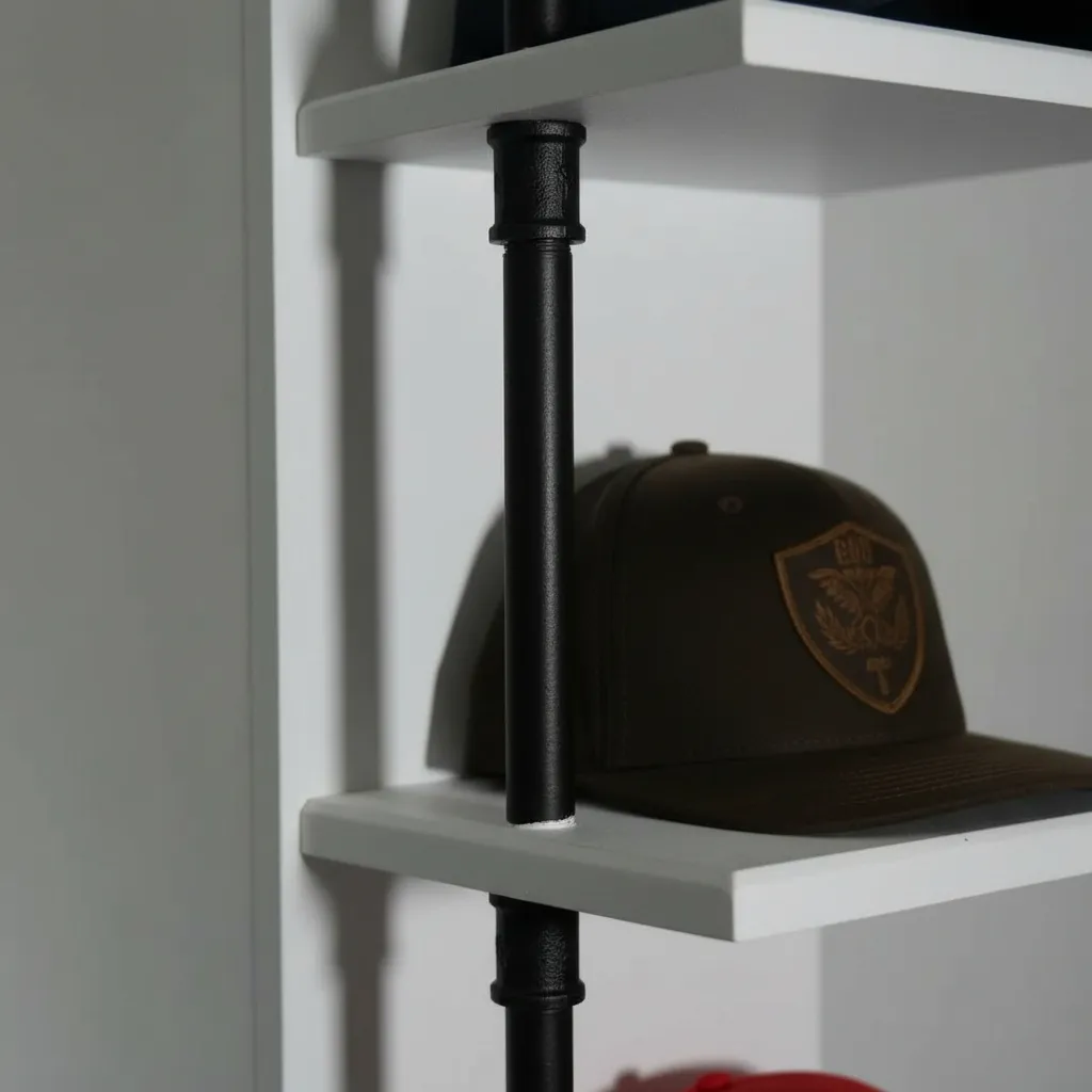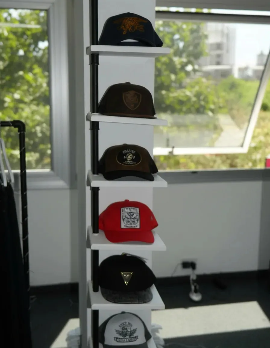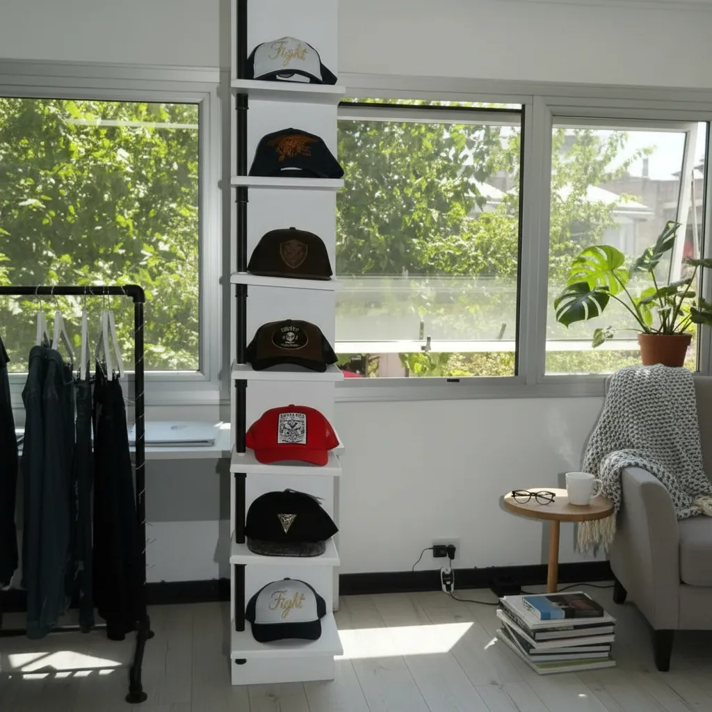 Exhibidor Organizador de Gorras HEFESTO – Estilo Industrial El modelo HEFESTO de Vintage Rack combina estilo industrial y funcionalidad para mantener tus gorras organizadas y siempre al alcance. Características principales: Estantes giratorios: 8 unidades de madera (20 x 25 cm), perfectos para exhibir y organizar gorras. Diseño versátil: Estructura reversible y estética vintage, ideal para hogares, tiendas o eventos. Dimensiones: Altura total de 160 cm, con base robusta de caño industrial de 25 mm de diámetro. Perfecto para quienes buscan combinar organización y estilo, este exhibidor realza cualquier espacio mientras mantiene tus gorras seguras y accesibles. ¡Nos encanta tu consulta! Vintage Rack